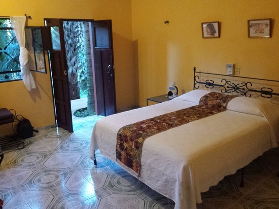 wifi solo en la terraza y en recepción, pero aun así y todo lo recomiendo sin ningún tipo de duda. Habitación amplia, muy bonita, con mosquiteras y aire acondicionado, frente a un fantástico jardín donde tienen previsto instalar una piscina en verano 2016. Estupendo desayuno incluido: café, té, zumo, tortilla de chaya (espinacas mejicanas), tostadas, mermelada y mantequilla. Rosa, quien lo lleva, muy amable.