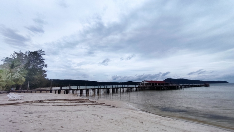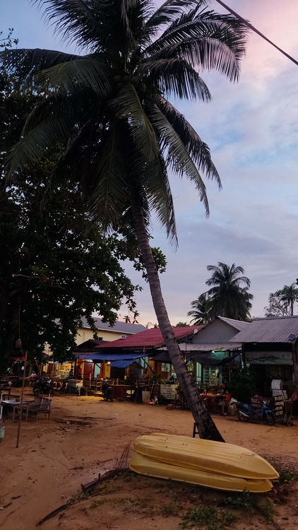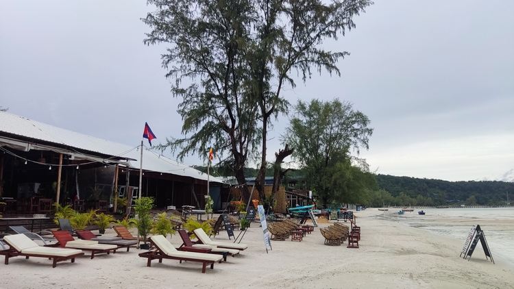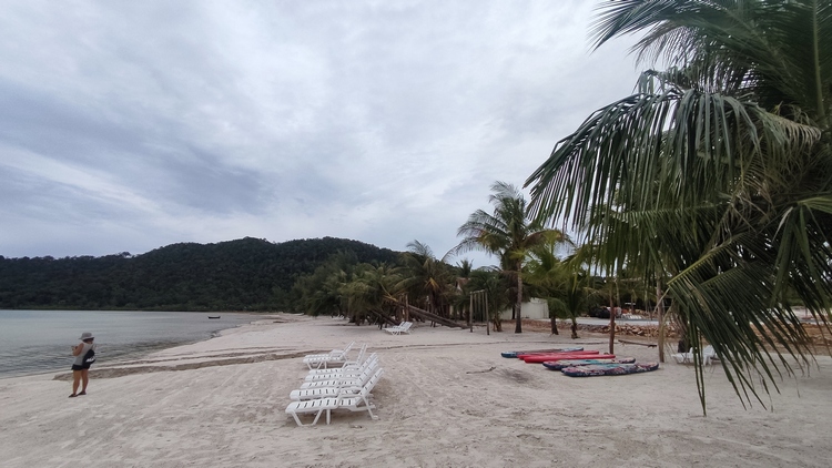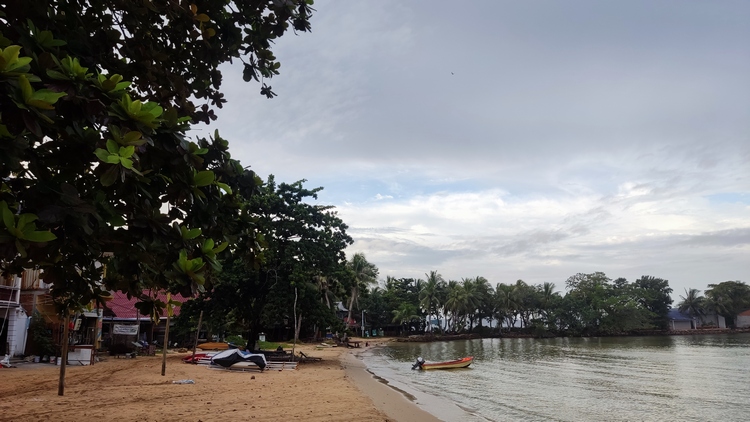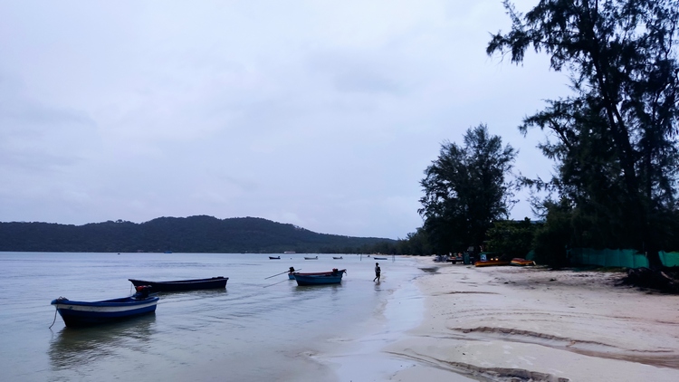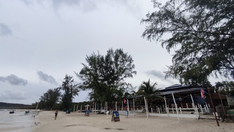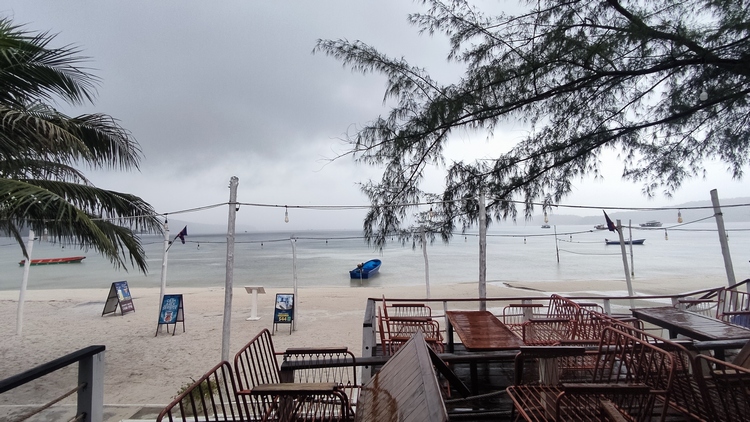 Koh Rong Sanloem no hay carreteras ni caminos que bordeen las playas, llegar a la bahía de Saracen sin reserva, como fue nuestro caso, te garantiza una buena caminata con las maletas por la arena preguntando precios y mirando habitaciones. Después de media hora bajo la lluvia llegamos a