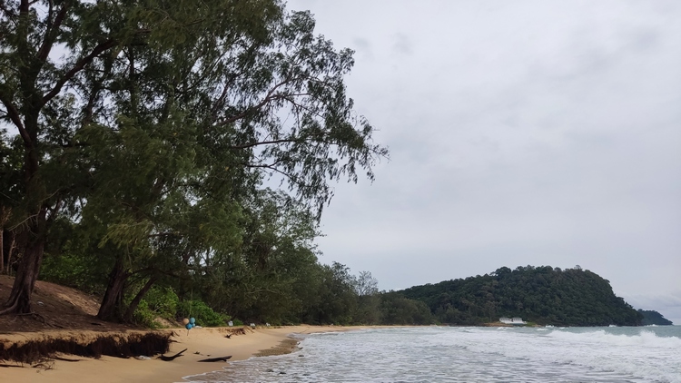 Al otro lado de la isla, cruzando la zona selvática se encuentran Sunset Beach, una playa de arena dorada que forma una pequeña bahía; y Lazy Beach, otra larga playa de arena blanca. Este lado de la isla, que no queda orientado hacia el continente, esta mas expuesto a la intemperie y el monzón. Durante la temporada de lluvias de otoño, cuando nosotros la visitamos, el mar está bravo y ajetreado, con olas altas y continuas, y fuertes corrientes que dificultan el baño.