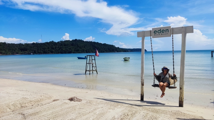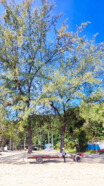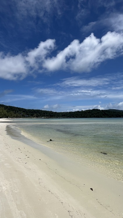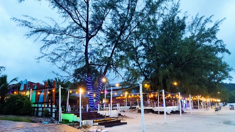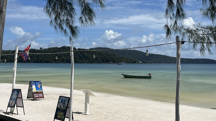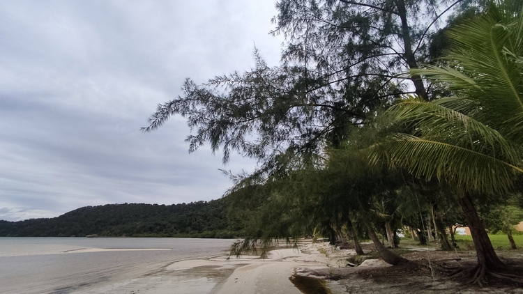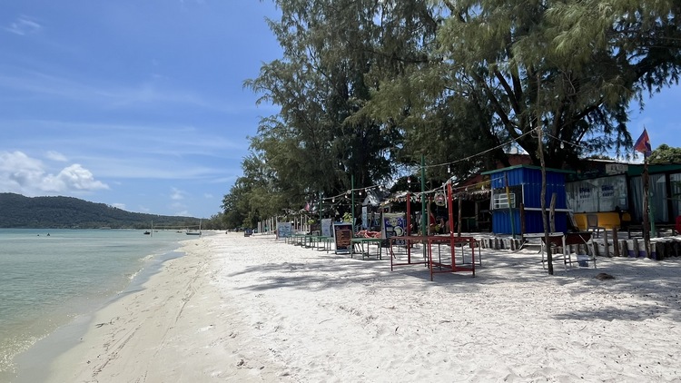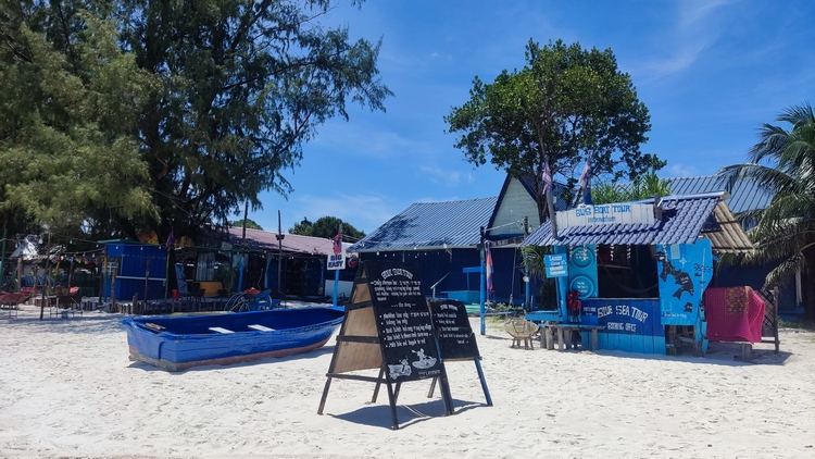 Koh Rong Samloem es una pequeña isla tropical de unos 25 km2, a una hora de navegación de Shianukville. El terreno es principalmente montañoso, con el centro ocupado por una densa jungla, rodeado de playas de arena blanca y aguas transparentes, sin carreteras que las unan. Hay algunos caminos de tierra roja por donde circula alguna moto o tractor pequeño, pero no hay más, el desplazamiento entre playas y en general en toda la isla es a pie. En las playas el ambiente es relajado. Los resorts, que se alinean uno junto a otro en el litoral, albergan los únicos bares y restaurantes, donde más allá de las mesas sobre la arena y las parrillas para las barbacoas nocturnas de pescado, no hay música a todo volumen ni fiestas de luna llena.