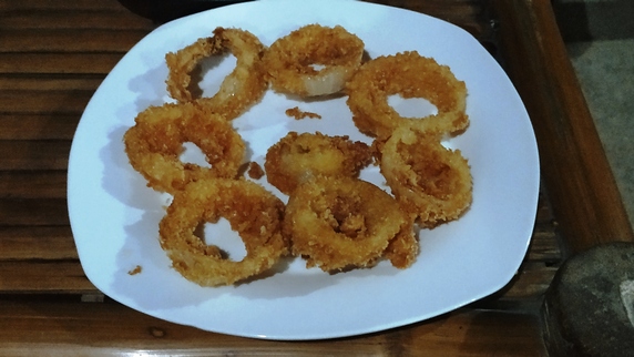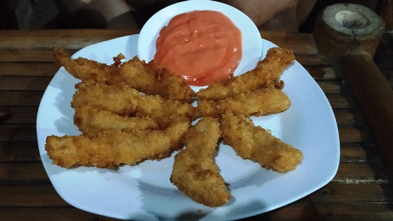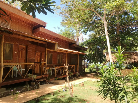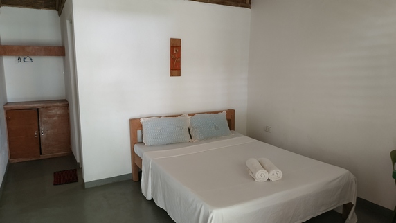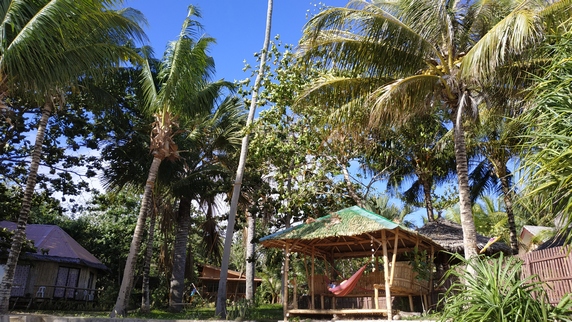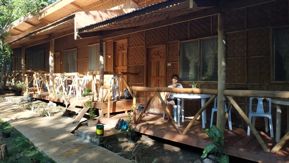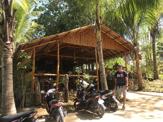 Tori’s Backpacker’s Paradise, 840 PHP, habitación doble con baño privado, ventilador y terraza. El resort se encuentra frente al mar, dispone de centro de buceo, restaurante y agradable terraza en primera línea de playa. Como ya es mediodía aprovechamos para comer,
