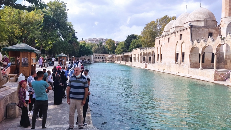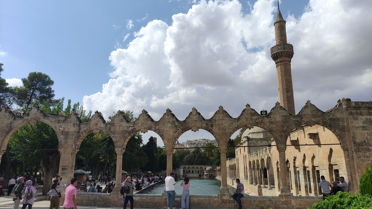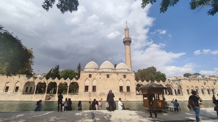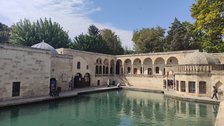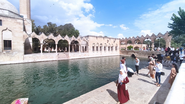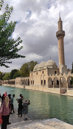 Balikli Göl. Rodeada de arcos de piedra, se encuentra flanqueada por dos mezquitas de los siglos XVII y XVIII. El complejo, de acceso gratuito, está integrado en un hermoso parque con canales de agua, pequeños estanques, zonas verdes, cafeterías y restaurantes, incluso una pequeña noria de agua, ubicado a los pies de una colina coronada por el castillo. Durante todo el día hay gente paseando, tomando algo en las terrazas, y turistas locales sacándose fotos junto al estanque o alimentando las carpas sagradas.
