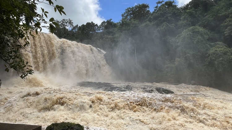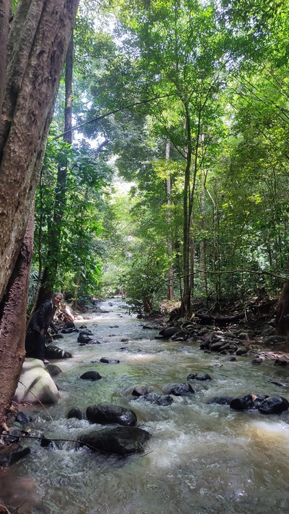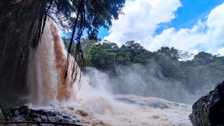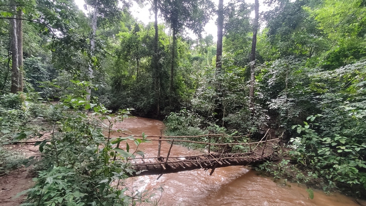 bunong, la minoría étnica más numerosa en las montañas camboyanas, de esta manera también el dinero va directamente a familias necesitadas. Eran dos guías jóvenes, entre 25 y 30 años, conocedores del bosque y buenos ojeadores. Avistamos más de una veintena de micos a lo largo del día, en la mayoría de los casos trasladándose entre las copas de los árboles, y disfrutamos de una agradable comida cocinada en una hoguera de bambú. En el camino de vuelta, paramos a ver la cascada de Laeng Kao, una preciosa caída de agua a unos cientos de metros de la carretera.