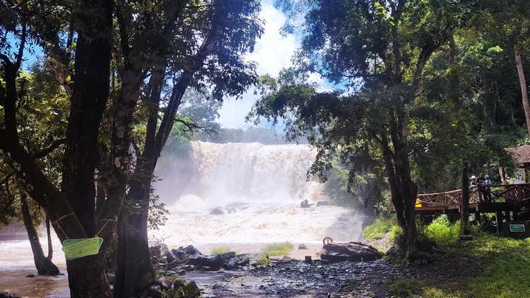 La cascada de agua más importante del país es Boosra (acceso 20.000 khr), a unos 40 km de Sen Monorom. Se trata de una doble caída de agua, ambas con una altura de unos 20 mts y otros tantos de ancho, y separadas unos 150 mts entre sí. En realidad, hay una tercera caída, pero se pierde en la selva y es imposible acceder a ella. Unas pasarelas permiten cruzar de un lado a otro del río y acercarse mucho al rompiente del primer tramo. Hay algunos puestos de comida rápida y pequeños restaurantes en la carretera de acceso. De vuelta paramos en Sea Forest PhnomBaiChow, un resort que dispone de un bar restaurante junto a la carretera, desde donde hay unas vistas espectaculares sobre la montaña de Doh Kromom rodeada por un océano verde de vegetación que la hace parecer una isla.