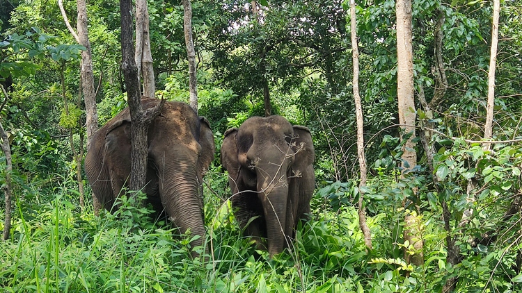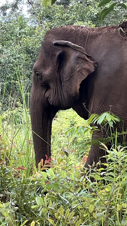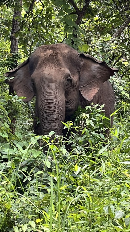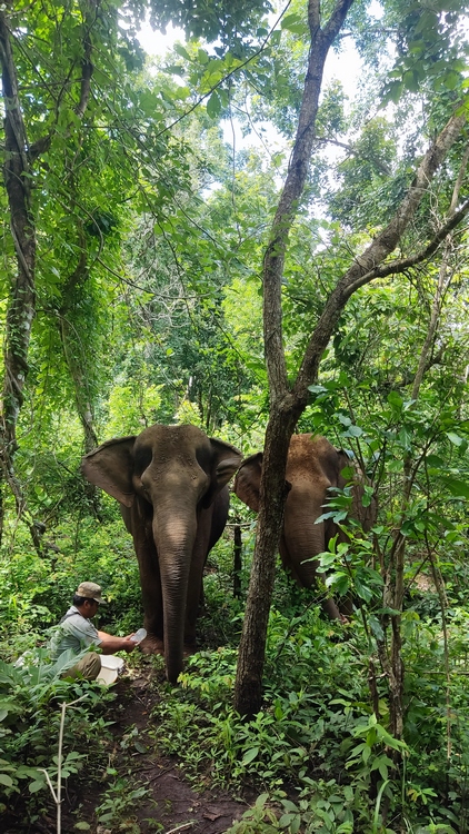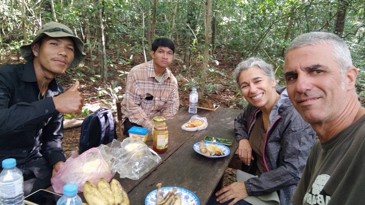 Existen tres opciones diferentes de visita al santuario, nosotros escogemos la opción de visita por la mañana a los elefantes, comida en sus instalaciones y vuelta a la selva para hacer un paseo de 2-3 horas. Los elefantes se mueven a sus anchas por todo el territorio de la reserva, así que cada día la distancia a recorrer hasta ellos es diferente, en nuestro caso fue una hora más o menos, y un par de horas observándolos y siguiéndoles a través de la selva. Tras una comida buena y abundante en sus instalaciones en medio del bosque, echamos una pequeña siesta en la zona chill out. Después paseo guiado por el bosque, que nos permite apreciar su majestuosidad, los árboles centenarios, riachuelos y otros pequeños animales. El recorrido finaliza en sus dependencias cerca de la carretera, desde donde nos llevan de vuelta al punto de recogida en Sen Monorom.