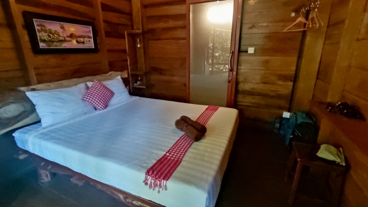 Mondulkiri Pizza Bungalows, 100.000 khr. Doce cabañas organizadas alrededor de una piscina y un pequeño jardín, junto al río. Amplia habitación doble con baño privado, terraza, tetera y aire acondicionado. Todo el establecimiento está muy limpio y cuidado. El personal es muy atento, aunque no todos hablan inglés. Dispone de restaurante, desayuno 5$. Servicio de lavandería, 2$/kg. Organizan excursiones.