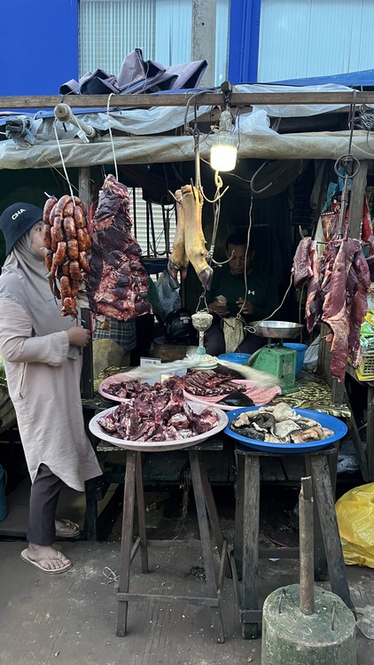 Frente al restaurante Hangout, hay un local donde las mesas se encuentran dentro de pequeñas cabañas individuales, provistas de barbacoa para que tu mismo te hagas la comida. Una experiencia interesante. Ternera y dos cervezas, 29.000 khr.