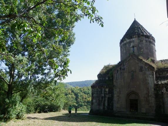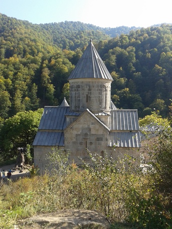 Tras una corta carretera de curvas, aislado en un frondoso bosque de nogales en el valle del río Haghartsin, esta el monasterio de