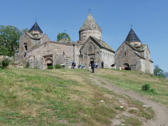 Goshavank. Fue levantado en 1191 por el monje, escritor y pensador armenio Mkhitar Gosh, sobre las ruinas del antiguo monasterio de Nor Getik destruido por un terremoto en 1188. Con el tiempo fue uno de los centros religiosos y culturales más famosos de la Armenia medieval. Sin muros que lo rodeen, el complejo consta de varias iglesias, capillas, un campanario, una biblioteca, las ruinas de una academia, un fantástico