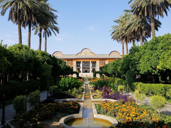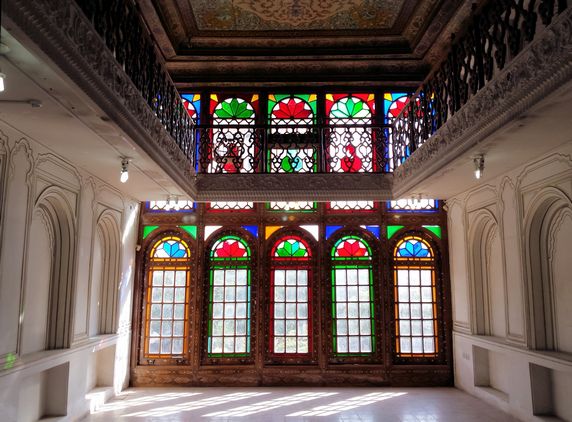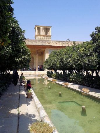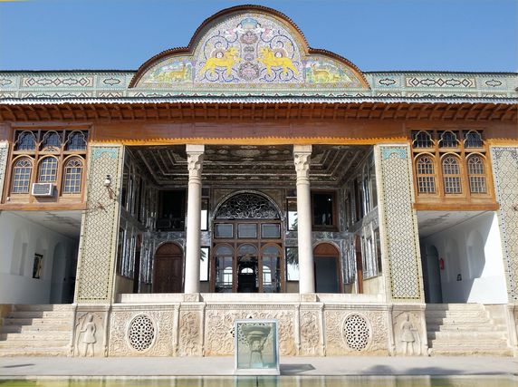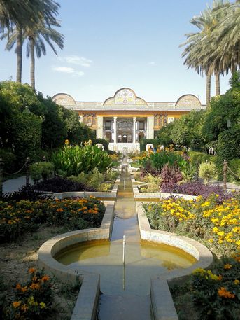 150.000 IRR, 3,75€). Esta casa tradicional construida entre 1879 y 1886, abierta hoy como museo, perteneció a los Qavam, una adinerada familia de comerciantes con gran influencia política. La casa se distribuye alrededor de un jardín, con un pequeño lago y fuentes flanqueadas por altas palmeras. Los techos y paredes están adornados con coloreadas baldosas o pinturas de estilo victoriano. Lo más llamativo es un porche completamente decorado con espejos con vistas al jardín.