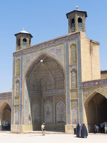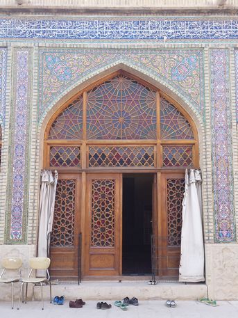 50.000 IRR, 1,25€), una mezquita del siglo XVIII ubicada junto a una de las puertas del bazar. Las puertas de acceso y el interior de la mezquita están decoradas con baldosas de motivos florales. El patio dispone de solo dos