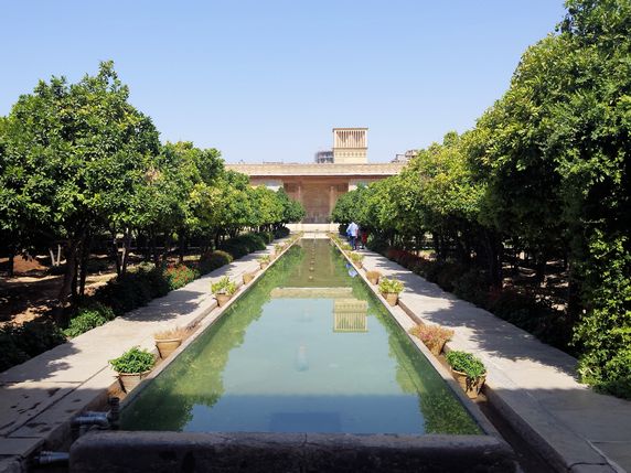 150.000 IRR, 3,75€). Antiguamente usada como prisión, esta ciudadela fue residencia de Karim Khan y centro militar de la dinastía. Nos recibe un amplio lago central rodeado de jardines. A su alrededor pueden ser visitadas algunas cámaras y habitaciones.