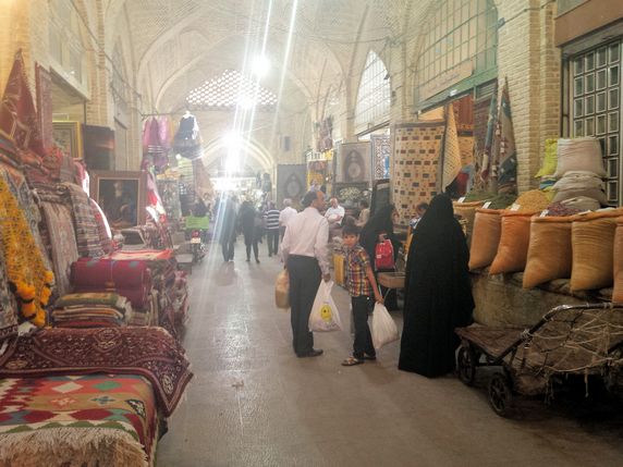 Bazar Vakil, situado en el centro de la ciudad, es el principal bazar de Shiraz. Ocupa esta ubicación desde el siglo XI. Dispone de cinco entradas, así como anchos y altos pasillos que dejan entrar mucha luz, y permiten recorrerlo cómodamente. Es un bazar animado y pintoresco, hay hermosos patios, caravasares, baños, y antiguas tiendas donde comprar alfombras, especias y artesanía de cobre sobre todo. Hay pocas opciones para los turistas. Enlaza con otros bazares menores, Seray e moshir, es un antiguo caravasar reconvertido en un pequeño bazar de joyas, o la puerta de Shamshigarha donde se vende artesanía local.