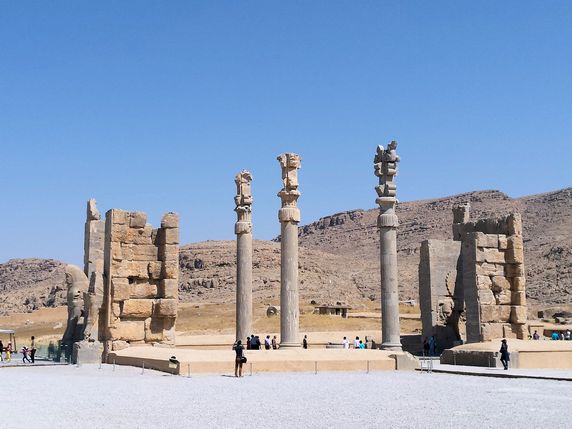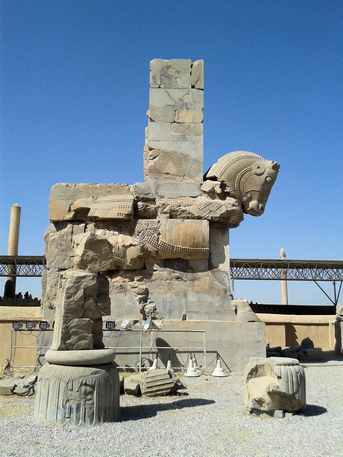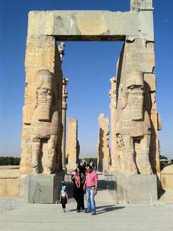 150.000 IRR, 3,75€) se encuentran a unos 70 km (1h) de Shiraz. Su construcción, comenzada por Darío I en 518 aC, continuó a lo largo de más de dos siglos, hasta ser saqueada, destruida e incendiada por Alejandro Magno en 330 aC, durante su conquista del imperio persa. Durante la época aqueménide fue residencia de verano de emperadores, capital ceremonial y palaciega donde se hacían recepciones oficiales y se celebraban las fiestas de Now Ruz, el año nuevo persa.