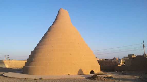yakhchal, o casa de hielo, una antigua nevera natural construida y usada para almacenar hielo, aunque también se usaban para almacenar alimentos. Una enorme cúpula cubre una zanja, formando un espacio que en ocasiones puede alcanzar los 5.000 mts cúbicos. Las paredes de hasta 2 mts de grosor, están hechas de arena, claras de huevo, limón, pelo de cabra y ceniza en proporciones específicas, que la hacen resistente a la transferencia de calor y al agua. Asomarse a su interior e imaginarlo lleno de hielo en este país, donde se alcanzan los 50º en verano con facilidad, fue una experiencia fascinante. Visitamos también una bonita
