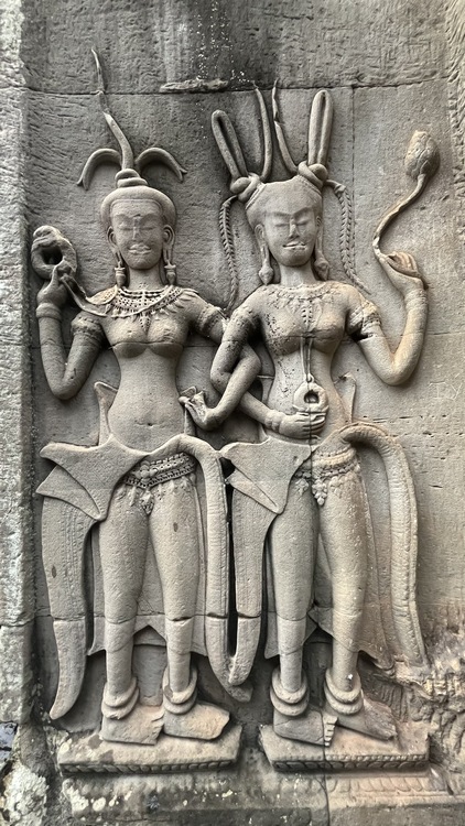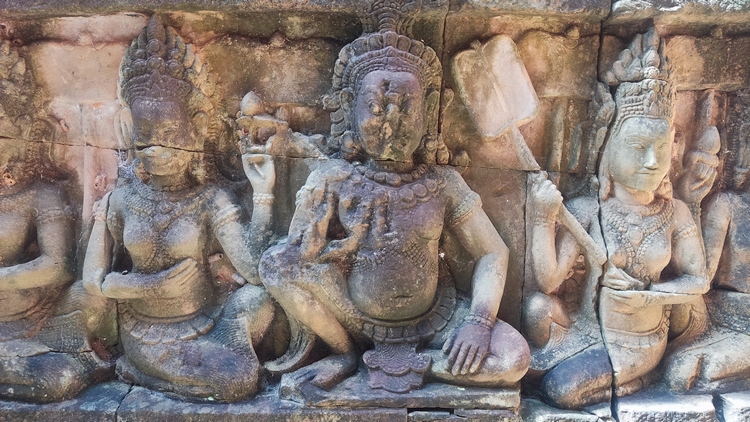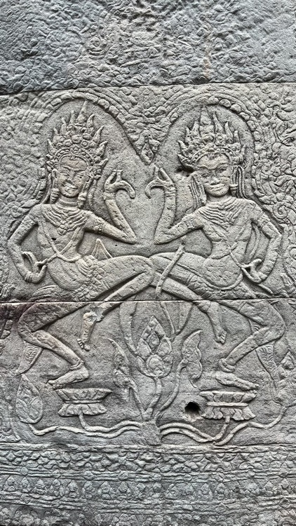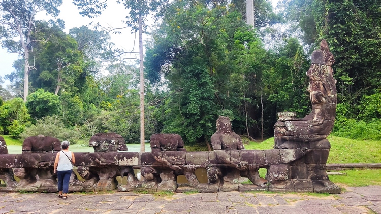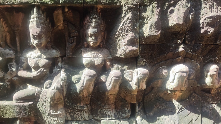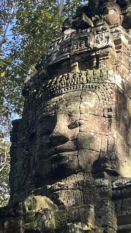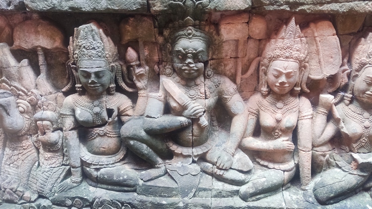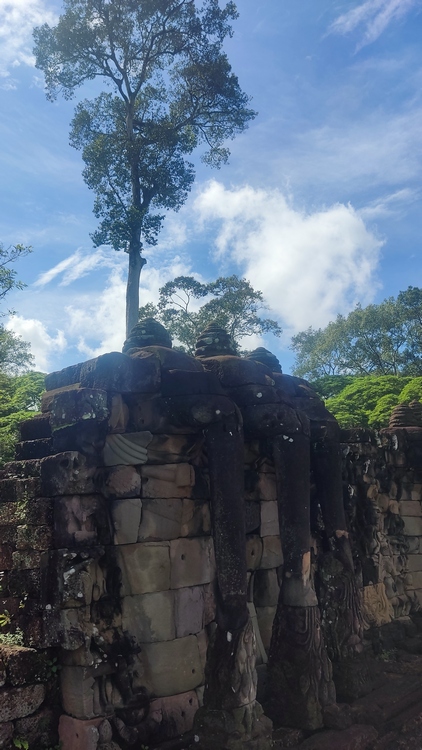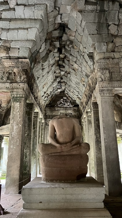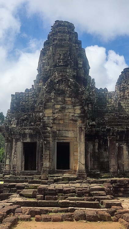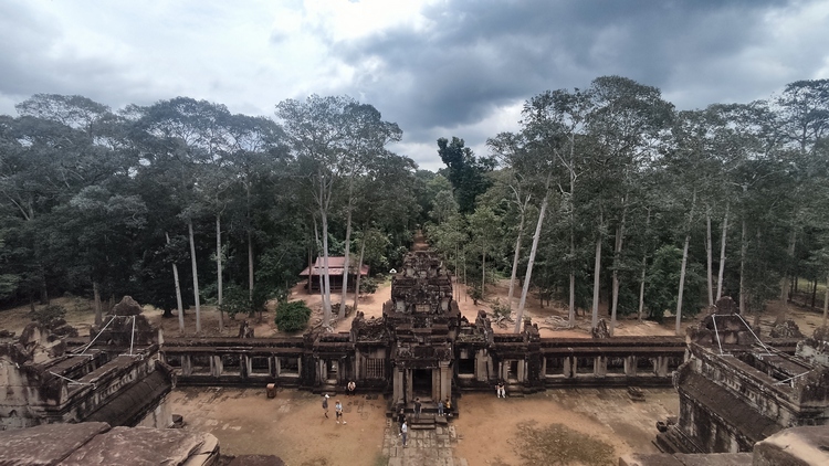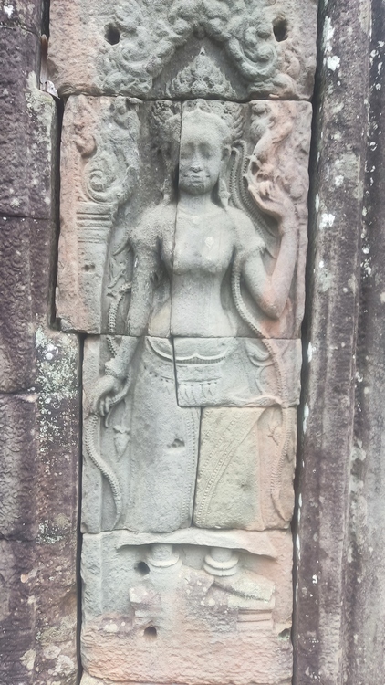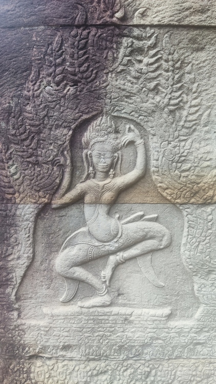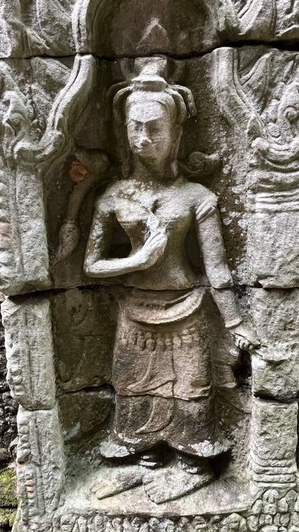 Uno de los templos más conocidos y fotogénicos es Ta Prohm. La selva engulle el monumento, arboles gigantescos atraviesan sus estructuras y cientos de metros de raíces abrazan las piedras, aunque está limpio de hierbas y los caminos que lo atraviesan son cómodos y seguros. A pesar de ello algunos pasillos están bloqueados por grandes bloques de piedra caídas cubiertas de liquen y musgo. Por lo demás, torres de flor de loto, pasillos, arcadas y bajorrelieves, como en todos los demás.