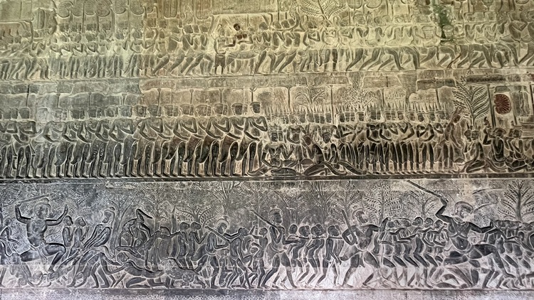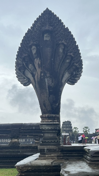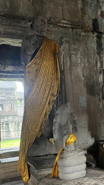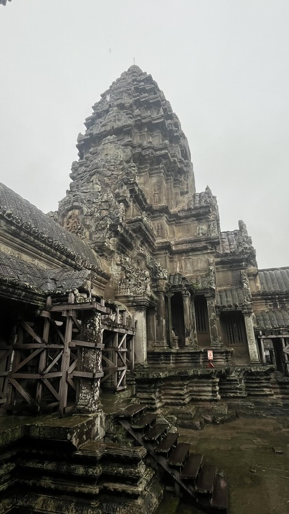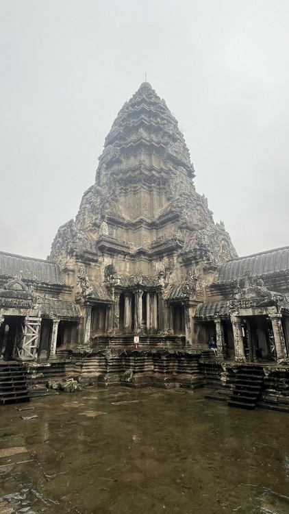 Angkor Wat es el templo jemer por excelencia, representa el monte Meru, la morada de los antiguos dioses. Ha sido usado de forma casi ininterrumpida desde hace 800 años, es orgullo nacional y símbolo del país, aparece incluso en el centro de su bandera. Es uno de esos monumentos que no deja indiferente a nadie, que seguro está en esas listas de "... que ver antes de morir", junto a la muralla china, Borobudur, Efesos, Petra, Machu Pichu o las pirámides de Egipto. Angkor Wat es el monumento religioso más grande del mundo, trescientos mil hombres y seis mil elefantes invirtieron 40 años en construirlo. Dada su extensión y la espectacularidad del complejo, una visita rápida, sin mucho detenimiento, no llevará menos de dos horas.