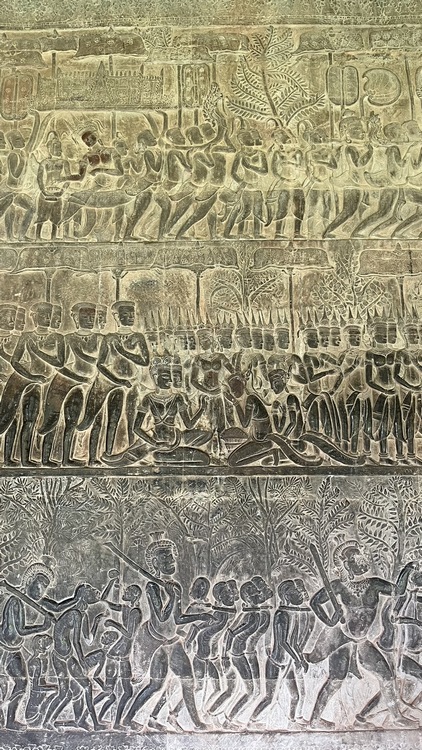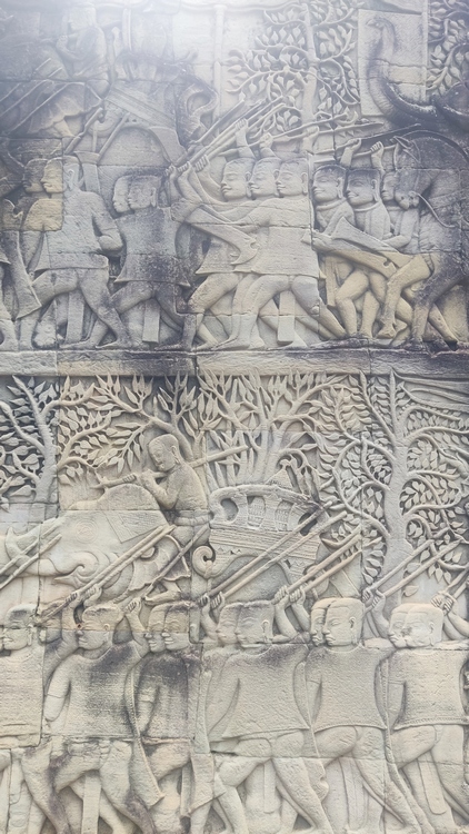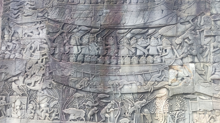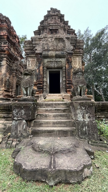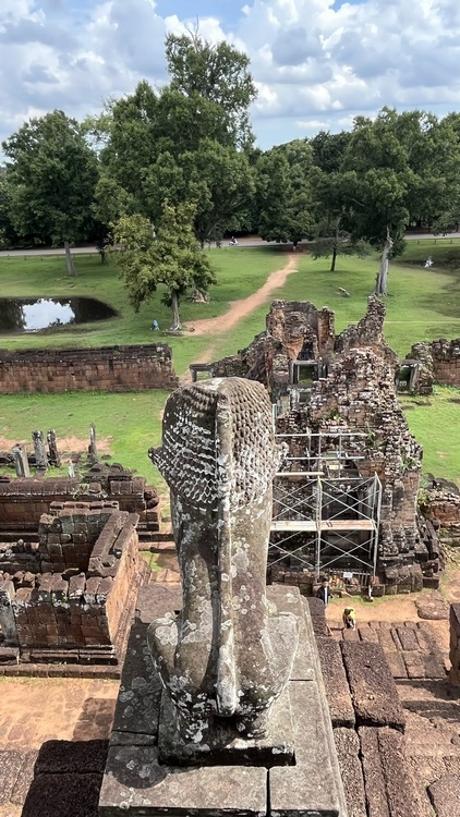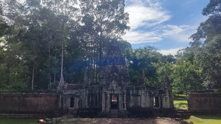 Segundo y tercer día visitamos la zona principal de templos. El templo Preah Khan es uno de los más grandes de Angkor, aparentemente residencia del rey Jayavarman VII mientras construía Angkor Thom. Aunque numerosos árboles y vegetación invaden las ruinas, su estado de conservación es bastante bueno. Un foso de 800 x 700 mts rodea la pared exterior, adornada con enormes garudas que luchan contra nagas. Los estrechos pasillos, que conservan gran parte del techo, atraviesan cuatro recintos con las paredes adornadas por relieves mitológicos, y pequeñas capillas con Budas. Frente a él se encuentra Preah Neak Pean, una isla circular artificial construida en medio de un estanque cuadrado de nenúfares que alberga un templo.