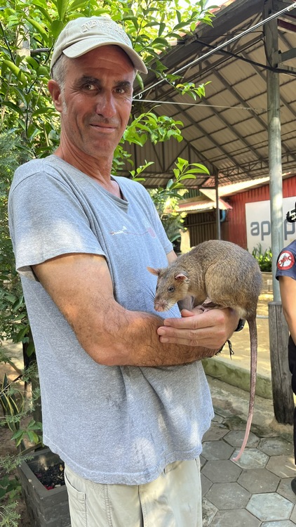 Fundacion Apopo entrena ratas africanas en la detección de minas, aprovechando su excelente olfato y su bajo peso, que evita la detonación del artefacto aunque el animal se sitúe sobre ella. Además estos animales son capaces de escanear un campo de tenis en unos 30 minutos, cuando se necesitan cuatro días para realizar la misma tarea con un detector de rastreo convencional. Dicha fundación, activa en una veintena de paises, calcula que en Camboya supera los 50.000 artefactos destruidos y un área limpiada superior a los 70.00 km