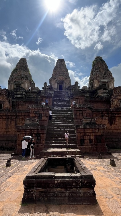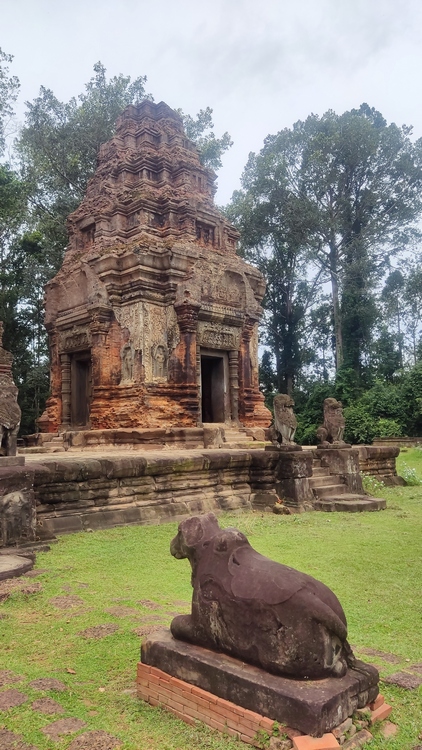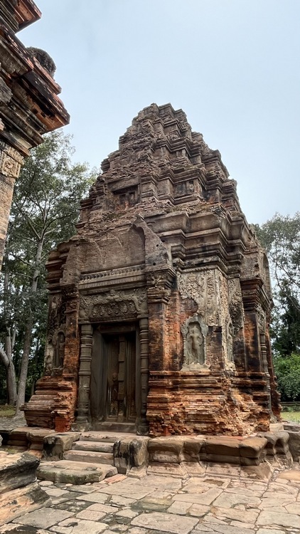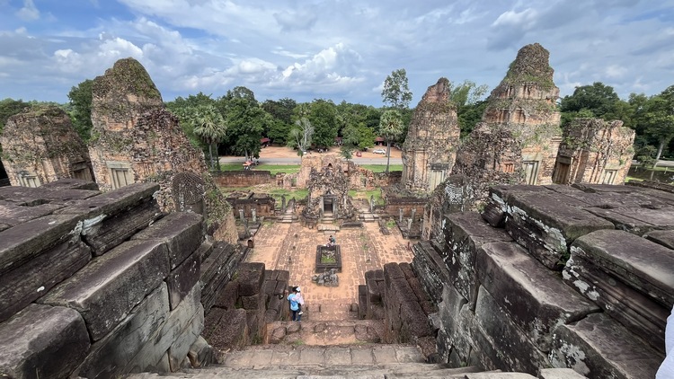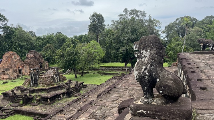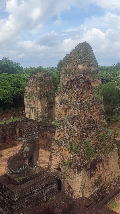 Un templo con unas vistas excelentes es Pre Rup, probablemente un antiguo crematorio de gran tamaño donde se celebraban ritos funerarios. Construido en forma piramidal, en el nivel inferior hay doce pequeños santuarios y en el nivel superior cinco torres, una en cada esquina más una central. El templo de Kravan, dedicado a Vishnu, consiste en cinco torres de ladrillo alineadas en una terraza común, cada una tiene su propia entrada, siendo la central la más alta.