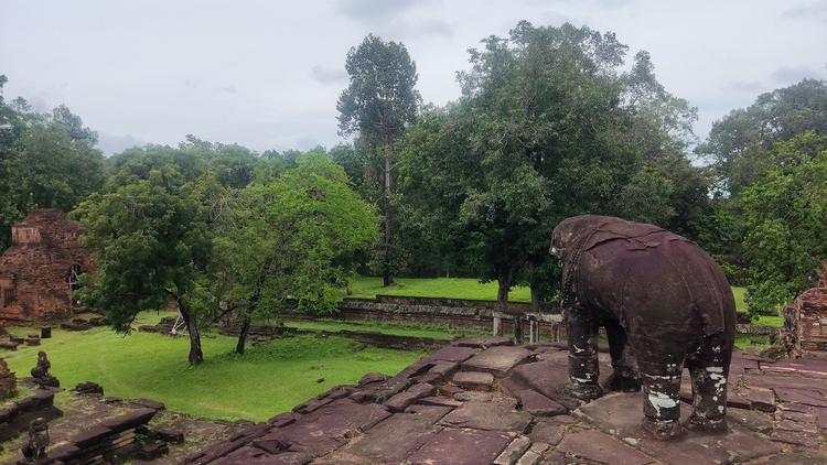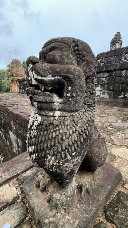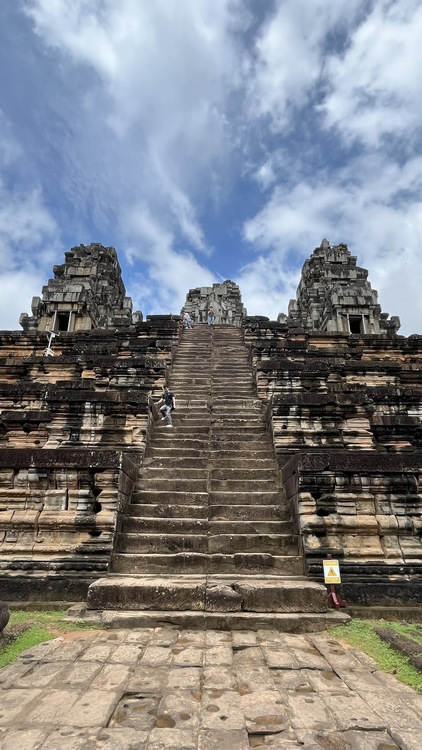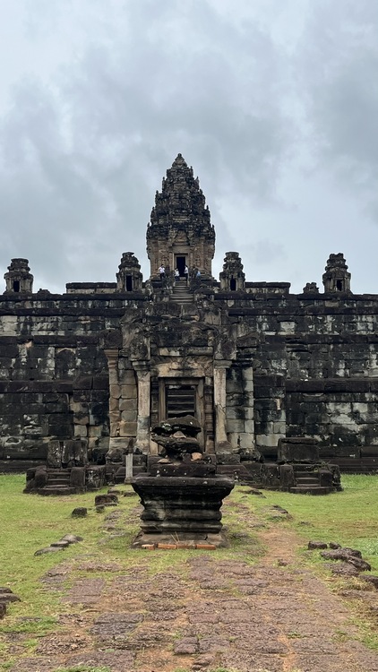 Tras un primer día cogiéndole confianza al tuktuk ya nos lanzamos a visitar los alredeodres de la ciudad, la aldea flotante de Kompong Pluk y los tres templos de Roluos, un grupo de templos anteriores a Angkor, primera capital del imperio jemer, que se encuentran a unos 30 km de Siem Reap. El primero y más grande es Bakong, una representación del monte Meru en cinco niveles al que se accede tras atravesar un foso protegido por tres muros concéntricos. En cada planta hay estatuas en las esquinas de elefantes o seres mitológicos, así como pequeñas estupas y santuarios.
