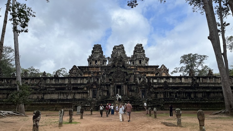Construido doscientos años antes que Angkor Wat, Ta Keo es uno de los templos más grandes del imperio jemer. Fue levantado por Jayavarman V y quedó inacabado, para lo que hay varias teorías: primera, la muerte del rey; segunda, que al ser el primer templo construido completamente en arenisca, los artesanos encargados de los relieves no pudieron continuar al ser un material demasiado duro y difícil de trabajar; incluso otra teoría habla del mal agüero entendido tras la caída de un rayo sobre él durante los trabajos de construcción. De todas formas la visita no decepciona a nadie, dedicado a Shiva, todo el conjunto simboliza el monte Meru, cinco torres santuario se elevan sobre una pirámide escalonada de 22 metros, rodeada por un foso y una muralla.