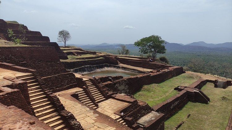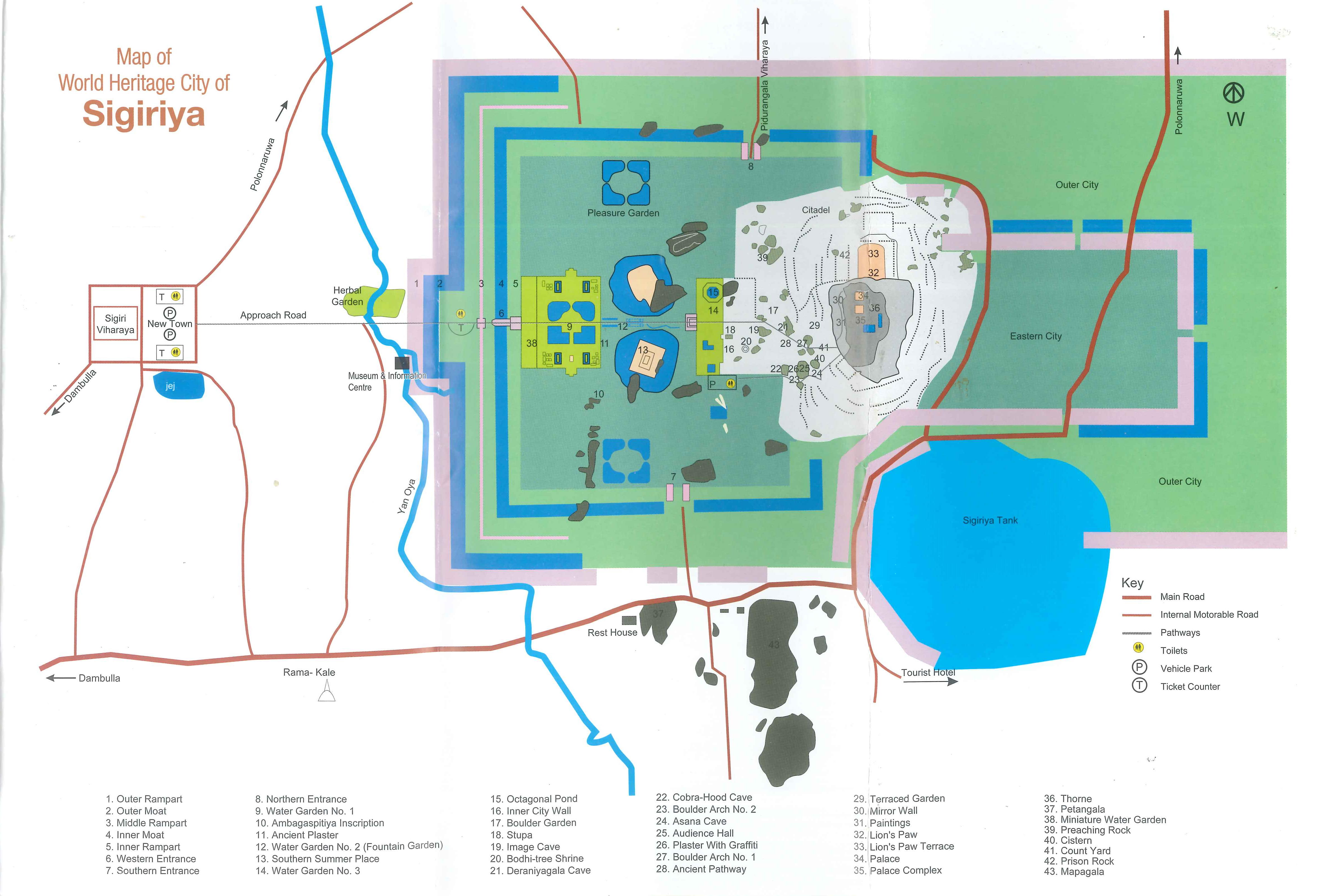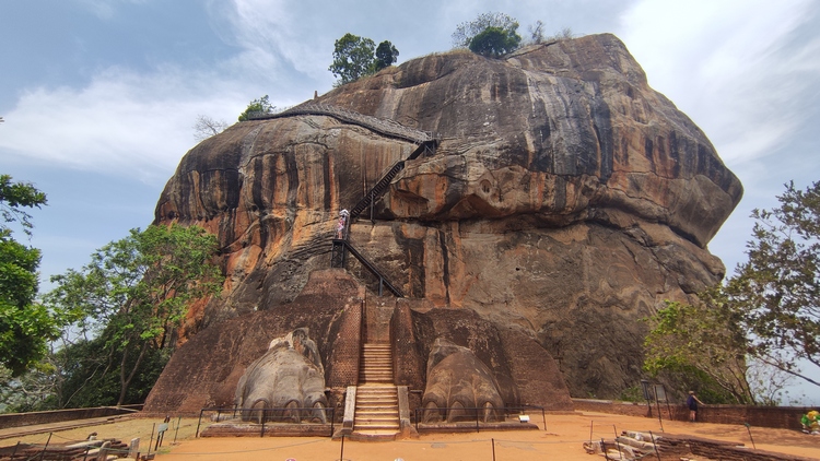 Lion's rock, acceso 21.900 SLR (30$ cada uno). Sobre una roca de origen volcánico de 370 mts de altura, que sobresale por encima del llano que la rodea, el rey Kasyapa (477 - 495) mando construir un complejo palaciego. En su origen estaba rodeado de un foso de agua, que albergaban una serie de jardines y estanques, que guían al visitante desde la entrada al palacio inferior, del que queda poco que ver y mucho por imaginar. Después de subir un tramo de 500-600 escalones llegamos a una pequeña explanada a los pies de la roca. Originalmente parece ser que había esculpida la cabeza de un león con las patas sobre la tierra donde la entrada se realizaba por las fauces del animal. Debía ser una imagen impresionante, hoy día solo la garras que se conservan completas, que hacen fácilmente 4-5 mts de altura. Hasta el palacio superior se llega por una escalera metálica protegida por una barandilla, no apta para gente con vértigo. Restos del palacio, terrazas, baños, jardines y cisternas cortadas en la piedra, recuerdan a Machu Pichu. Las vistas de 360º son espectaculares. Al descender nos aguarda una ultima sorpresa, una galería de frescos femeninos mostrando sus pechos, en perfecto estado de conservación, escondidos en una cueva. Aunque hoy solo son visibles 19 se cree que había más de quinientos, en un área de unos 150 mts de largo. Frente a la cueva se encuentra la pared espejo, donde se pueden ver grafitis de más de 1.000 años de antigüedad.