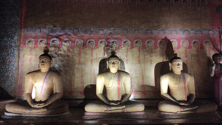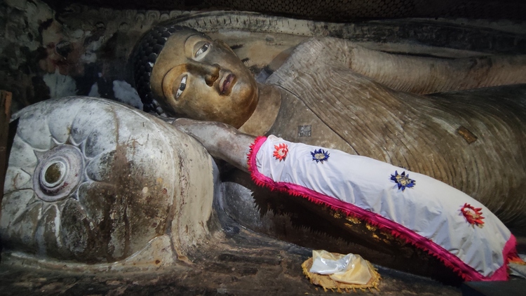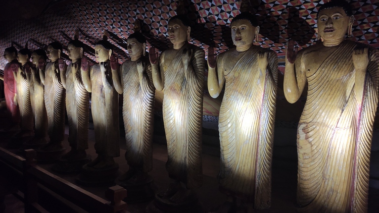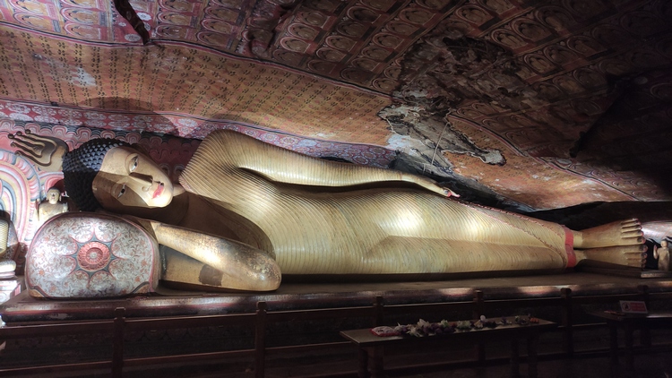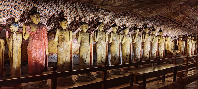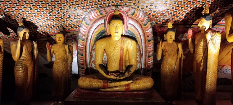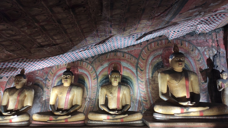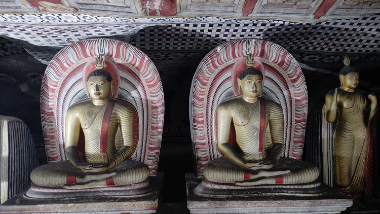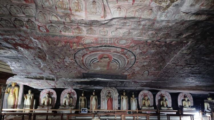 acceso 2.000 SLR, situado a unos 15 km de Sigiriya. Se trata de un complejo de cinco santuarios ubicados en cuevas contiguas, habitadas por monjes budistas desde el siglo III ac, que albergan más 2.000 m