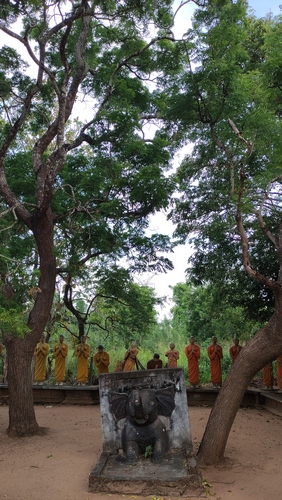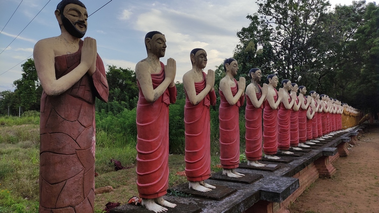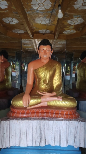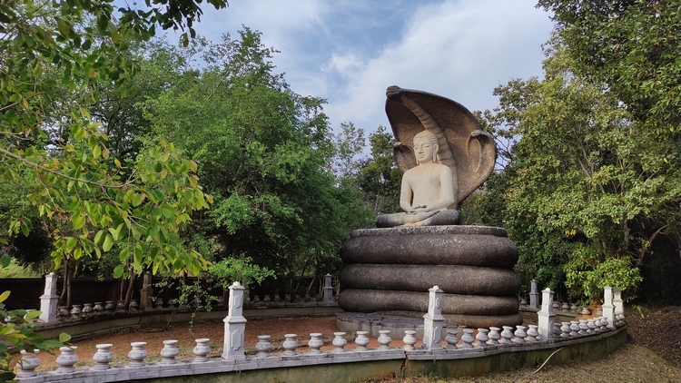 dos templos budistas, uno con un gran Buda sentado protegido por una enorme cobra que le hace sombra; y un segundo templo habitado por monjes con una estatua de Buda que puede hacer facilmente 20 mts de altura. Todo el recinto está rodeado de estatuas de peregrinos orando. Muy interesante.