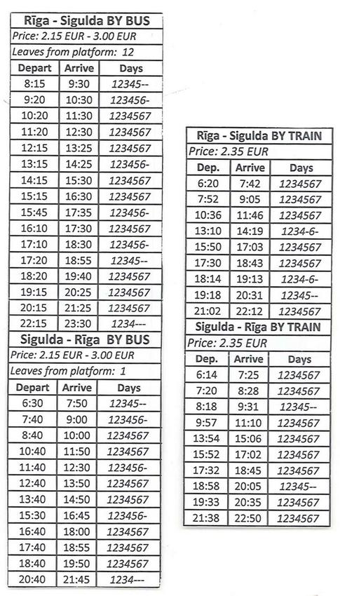 Para volver a la estación de Sigulda hay que coger el autobús. nº 12. La parada está en el parking frente al castillo, delante de los puestos de souvenirs.