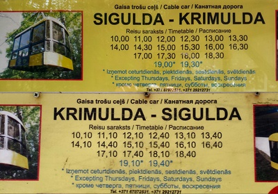 Horarios. Inaugurado en 1969 es el único de los estados bálticos. Tiene una longitud de 1.200 mts, y 42 mts en su punto mas alto sobre el río Gauja. Para lo s que buscan emociones fuertes los fines de semana es posible hacer