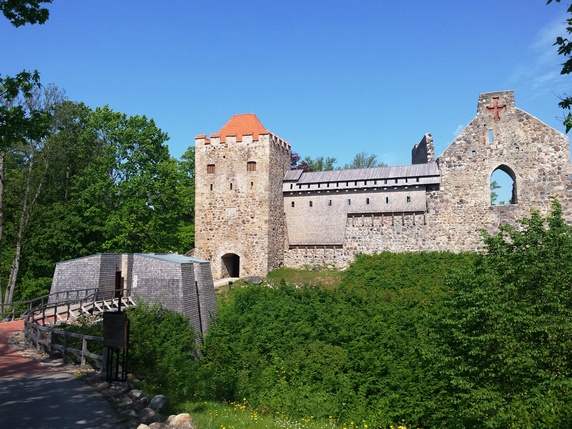 Cruzo la verja, y atravieso el cuidado jardín del Castillo Nuevo, construido en 1878 en estilo neo-gótico sobre un antiguo edificio de piedra, como residencia de los señores feudales. Tras él está el Castillo Medieval (acceso 1,42€), construido en 1207 como una fortaleza tipo castillo con capilla, por la orden de los Hermanos Livonios de la Espada. Tras su derrota en 1236 la Orden Livonia se hizo cargo y lo transformó en un edificio tipo convento. Con la llegada de las armas de fuego, las fortalezas medievales fueron perdiendo su importancia inicial. El castillo fue destruido durante la Gran Guerra del Norte a principios del siglo XVIII.