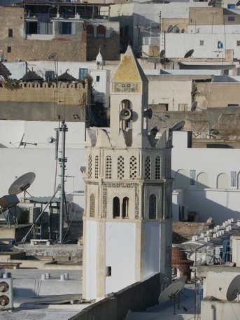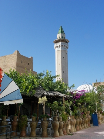 medina, que ubicada sobre una pequeña colina es un caprichoso laberinto de callejuelas lleno de mezquitas, cafés, anticuarios y zocos, encerrados en sus casi 2,5 km de muralla. Un corto paseo da una idea de todo ello, pero cuidado no es especialmente grande, pero si lo suficiente como para perderse. Bajo la puerta de Bab el-Jedid hay un mercado de abastos, y un rastro que se instala durante las horas de luz, y que satura la Rue de France hasta la Place des Martyrs. Aquí están la Gran Mezquita aghlabid de 850 (5 TND), el Ribat del siglo VIII, el Museo Arqueológico (4 TND) y la puerta principal de la medina.