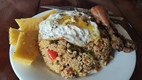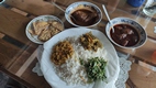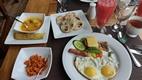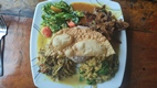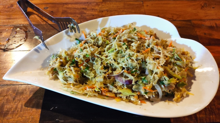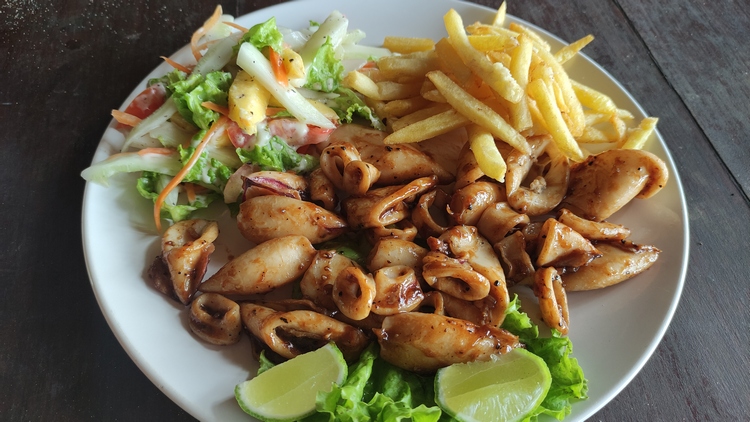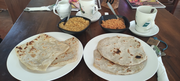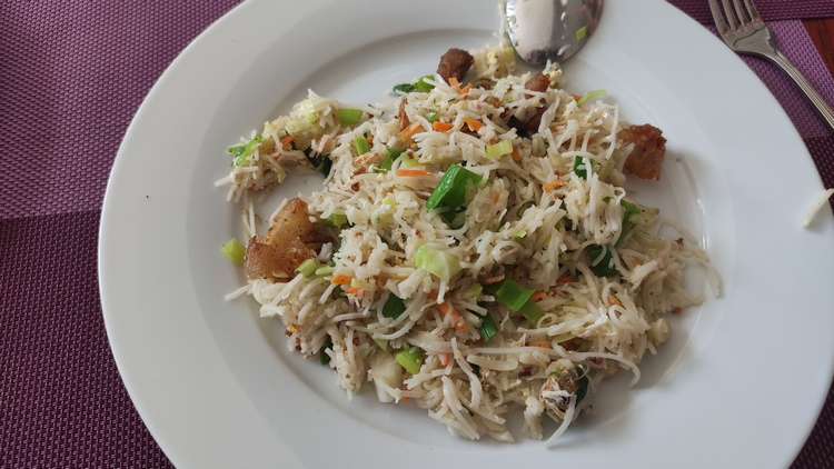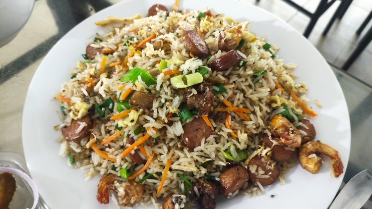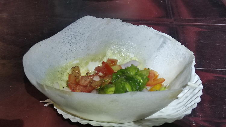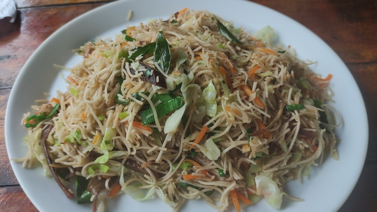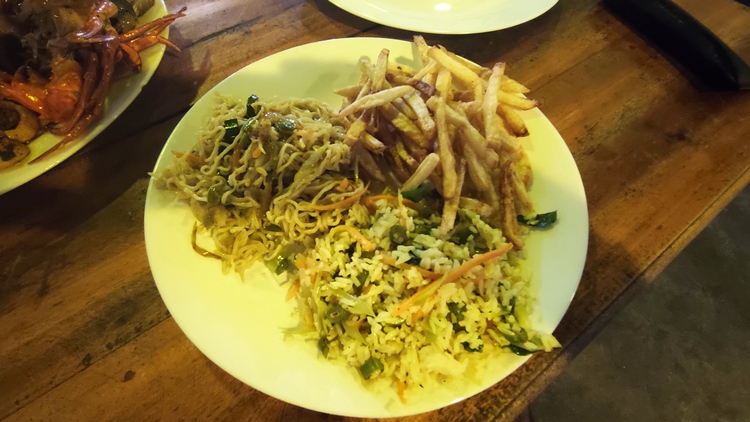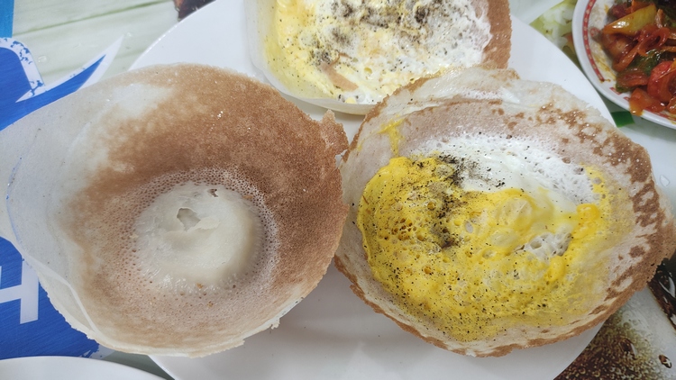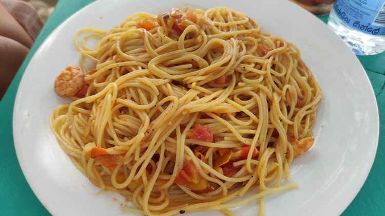 Arroz o fideos con verduras, pollo, cerdo, ternera, marisco, o con todo ello, son habituales en cualquier carta. Hoppers son crepes de harina de arroz y leche de coco, existen versiones dulces y saladas, lo normal es tomarlo para desayunar o cenar, son un vicio. No confundir con los string hoppers, fideos de arroz. Kottu, es una mezcla de vegetales, huevo, carne y especias; lamprais es una mezcla de verduras cocidas, pasta de gambas, carne y arroz, servido en una gran hoja de banana; pol sambol, es una mezcla de pulpa de coco, chile en polvo, chile seco, limón, cebolla y sal, en fin, no tengo palabras, se me caen lo lagrimones solo de recordarlo; dosa, plato típico del sur de la India parecido a una crepe de arroz y frijol con especias, se puede tomar solo o acompañada de verduras o mantequilla.