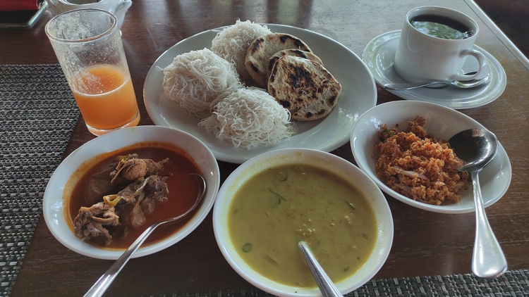Sri Lanka es una isla, en los lugares más populares, como Arugam Bay, la mayoría de los restaurantes ofrecen barbacoas con una amplia variedad de pescado y marisco fresco (cangrejos, gambas y langostas sobre todo). El tipo de pan, por llamarlo de alguna manera, es el mismo tipo que en la India: rotti, paratha, parotta, papadum, dosa... sirven tanto para acompañar la comida como para picar algo a media tarde. La variedad y calidad de la fruta es espectacular, siempre fresca y madura, será parte principal de los desayunos y puede ser degustada también en multitud de zumos; abundan la banana, papaya, coco, piña, sandía, aguacate, rambutan, granadillas (fruta de la pasión), chirimoyas... Con respecto a las bebidas, Sri Lanka es uno de los primeros productores de té del mundo, así que dificilmente te va a decepcionar. Cerveza Lion es la más habitual, un rubia sabrosa que entra fácil, cuidado con la Lion Stout, tiene 8,8º y aquí las botellas son de 75 cl, así que una sola ya pega fuerte.