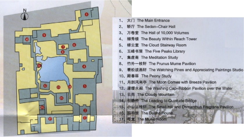 . De modestas dimensiones, apenas media hectárea, fue construido en el siglo XVIII, y formo parte de la residencia de un cortesano de la dinastía Qing. El Jardín, en cuyo centro hay un estanque lleno de carpas, está adornado con árboles, flores y rocas. A su alrededor canales, puentes, pabellones y pasos techados, nos conducen a los pequeños y delicados pabellones adornados con mobiliario de las dinastías Ming y Qing. El Puente Yibu, en la parte este del jardín, es el puente de piedra más pequeño de China. Como curiosidad decir que parte de la residencia fue duplicada y expuesta en el Museo Metropolitano de Arte de Nueva York en 1981, y que el jardín en miniatura también se exhibió en el Centro Pompidou de París en 1982.