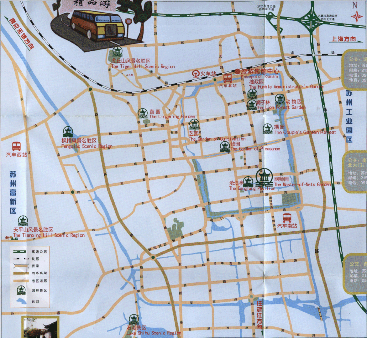 . Es un enorme parque situado al sur de la ciudad antigua, canales, cascadas de agua, formaciones rocosas, mangos, y un Jardín espectacular. Su construcción se inicio hace 2.500 años, y hay que destacar: Hui Guang, la pagoda más antigua de Suzhou, el puente Wu, el puente de piedra más grande la ciudad, y la Puerta Panmen, la única compuerta que se conserva de las ocho que unían Suzhou con el resto de China. La entrada incluye un pequeño paseo en barca por sus canales.