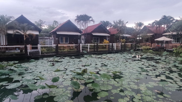 Sok San Motel, 80.000 khr. Pequeñas cabañas con lavabo privado organizadas alrededor de un fantástico estanque de nenúfares. No sirven desayuno. No hablan inglés. Cama cómoda, ventilador, aire acondicionado y tetera, muy tranquilo.