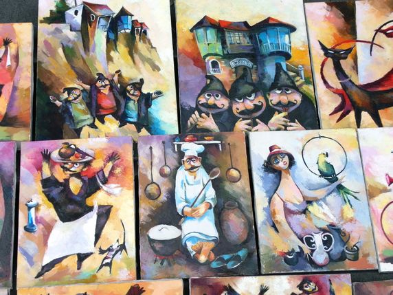qantsis (cuernos tradicionales para beber vino), espadas, muñecos de trapo con trajes regionales, imanes, libros de cocina...