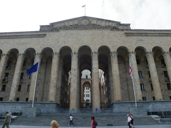 Rustaveli Theater, un edificio de estilo rococó construido en 1921, donde durante los días que estuvimos en Tibilisi no hubo ninguna representación. Un poco mas abajo encontramos la