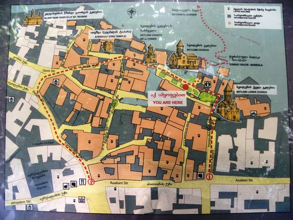 Erekle II son una serie de calles peatonales y estrechas ideales para pasear, que transcurren paralelas al río, y que fueron el eje comercial de la ciudad vieja en la época medieval. Empezamos en el