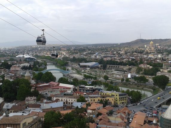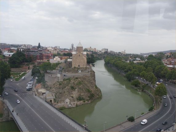 teleférico lo une con Narikala Fortress pasando sobre el río