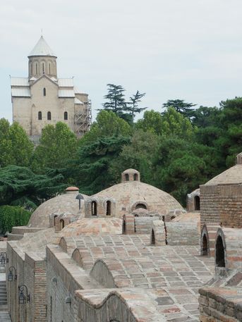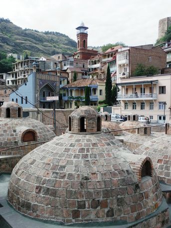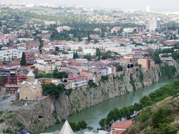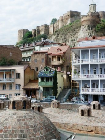 Tbilisi se expande, encajada entre colinas, a ambos lados del río Mtkvari. Gracias a ello desde Nariqala, antigua ciudadela que se remonta al siglo IV, se tienen unas estupendas vistas de su ciudad vieja. Calles sinuosas, viejas casas balconadas, pequeñas plazas verdes, hermosas iglesias, sinagogas, mezquitas, baños termales y sulfurosos, hoteles, bares y cafeterías llenos de gente a todas horas, esta es sin duda la zona mas interesante de la ciudad. En un extremo del barrio, en la Plaza de la Libertad, nace la avenida Rustaveli cargada de edificios del siglo XIX y donde se encuentran algunos edificios emblemáticos de la ciudad como el Parlamento, el Teatro Rustaveli, el Pala-cio de la Opera, la Galería Nacional o el Museo Arqueológico de Georgia. Tbilisi es una ciudad moderna con un largo pasado, el centro histórico es cómodo para pasear, hay una amplia oferta cultural y se come de fábula.