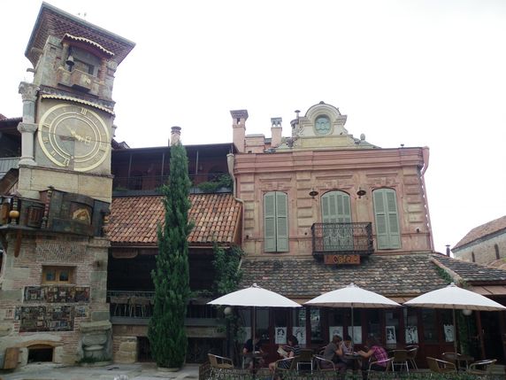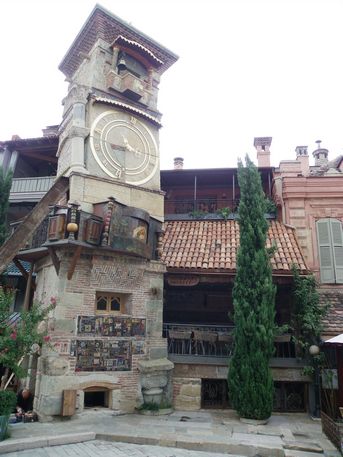 Gabriadze Marionette Theater fundado en 1981 en un edificio del siglo XIX. Su principal atractivo es la Torre del Reloj construida en 2011 por el propio Rezo Gabriadze. Es una curiosa torre de ladrillo inclinada, formada por varios bloques que parecen colocados uno encima del otro al azar y a punto de caer en cualquier momento, decorada con marionetas, vasijas, llamativas baldosas y excentricidades propias de un cuento de hadas. Cuando el reloj da las horas, dos puertas se abren y un ángel de alas doradas aparece mientras golpea la campana con un martillo. Junto al teatro disponen de un café restaurante donde se come estupendamente.