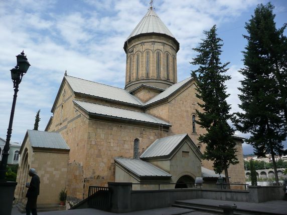 Iglesia Kashveti de San Jorge. Frente a ella, al otro lado de la calle, se encuentra el edificio del