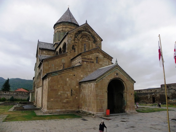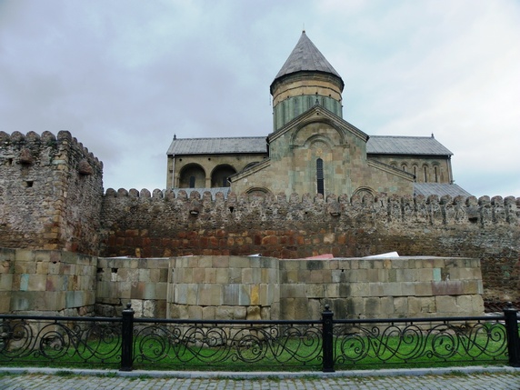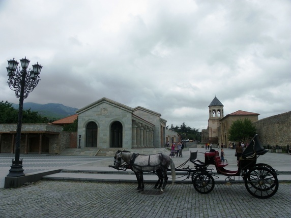 Visible a lo lejos, en lo alto de una colina, está la Iglesia de Jvari levantada sobre el lugar donde Santa Nino, evangelizadora que convirtió al cristianismo al rey Mirian III, erigió una gran cruz de madera en el sitio de un templo pagano. Es una de las iglesias mas veneradas del país. Subir en taxi cuesta 25 GEL.