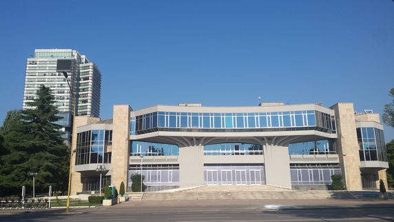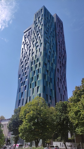 El edificio que más destaca, con su enorme mosaico en la fachada, es el