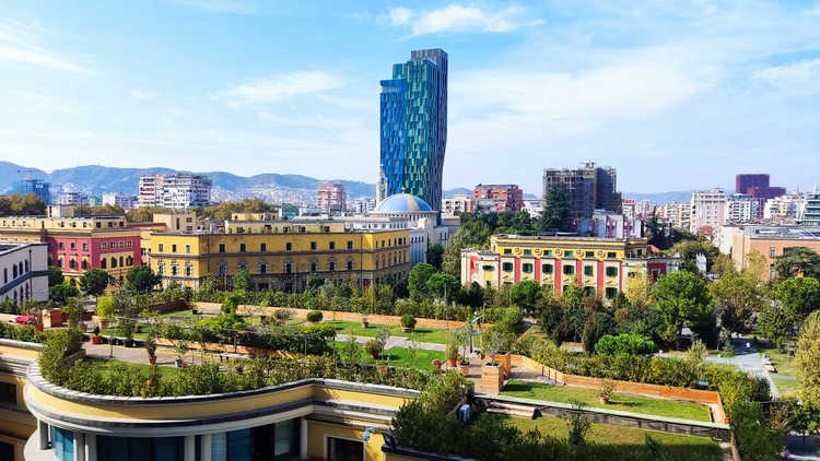 Con la llegada de la democracia, tras un periodo de casi medio siglo de paranoica dictadura comunista, que condenó a Albania al más absoluto aislamiento, gente necesitada de todo el país emigro a Tirana en busca de mejores oportunidades. Esto provocó que en 25 años la población de la capital se haya cuadriplicado, y que la pequeña ciudad de provincias se haya visto obligada a crecer a marchas forzadas. Ello ha dejado un trazado urbanístico algo caótico, calles sin nombre ni semáforos, y aunque muchos de los viejos edificios feos y aburridos están siendo pintados, aún queda mucho por hacer. Sus escasos atractivos se encuentran alrededor de Skanderberg Square, la plaza principal de Tirana, presidida por una estatua ecuestre de este legendario héroe de las guerras medievales contra los otomanos. En este gran espacio abierto en medio de la ciudad se hallaba el casco histórico otomano, que fue destruido durante el comunismo para construir el edificio de la Ópera y el Museo de Historia.