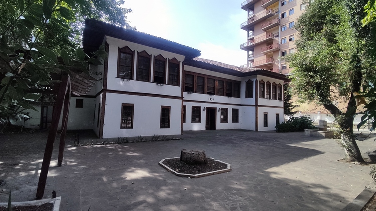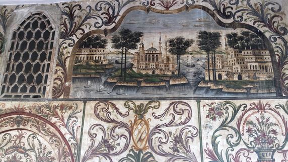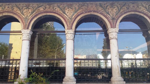 Mezquita Et'hem Bey (XVIII XIX), cuyas paredes exteriores y pórtico están decorados con árboles, cascadas de agua y puentes, unos motivos que rara vez se representan en el arte islámico. Este diseño se repite en sus paredes y cúpula interior. Tras ella está la