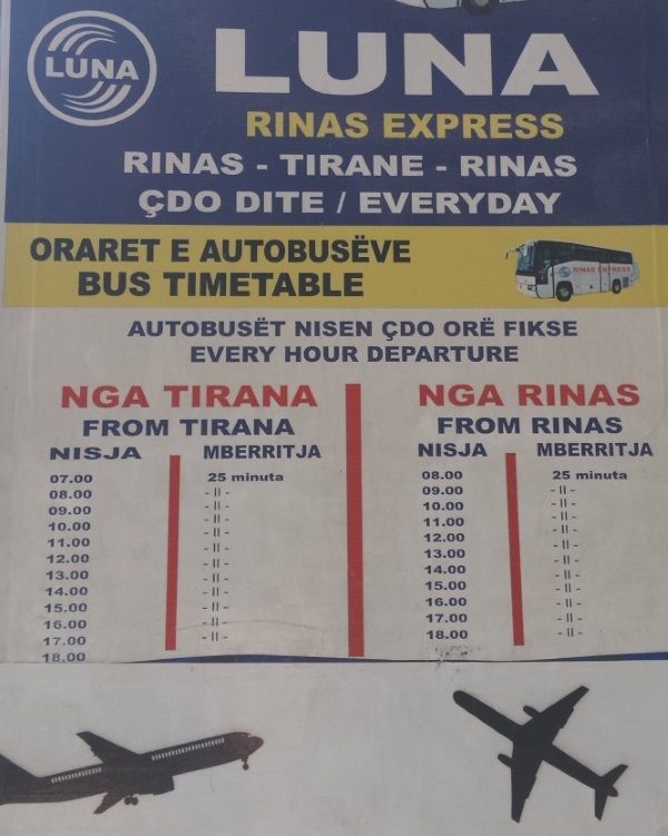 Taxi desde el aeropuerto (pasada medianoche) 2.500 lek.